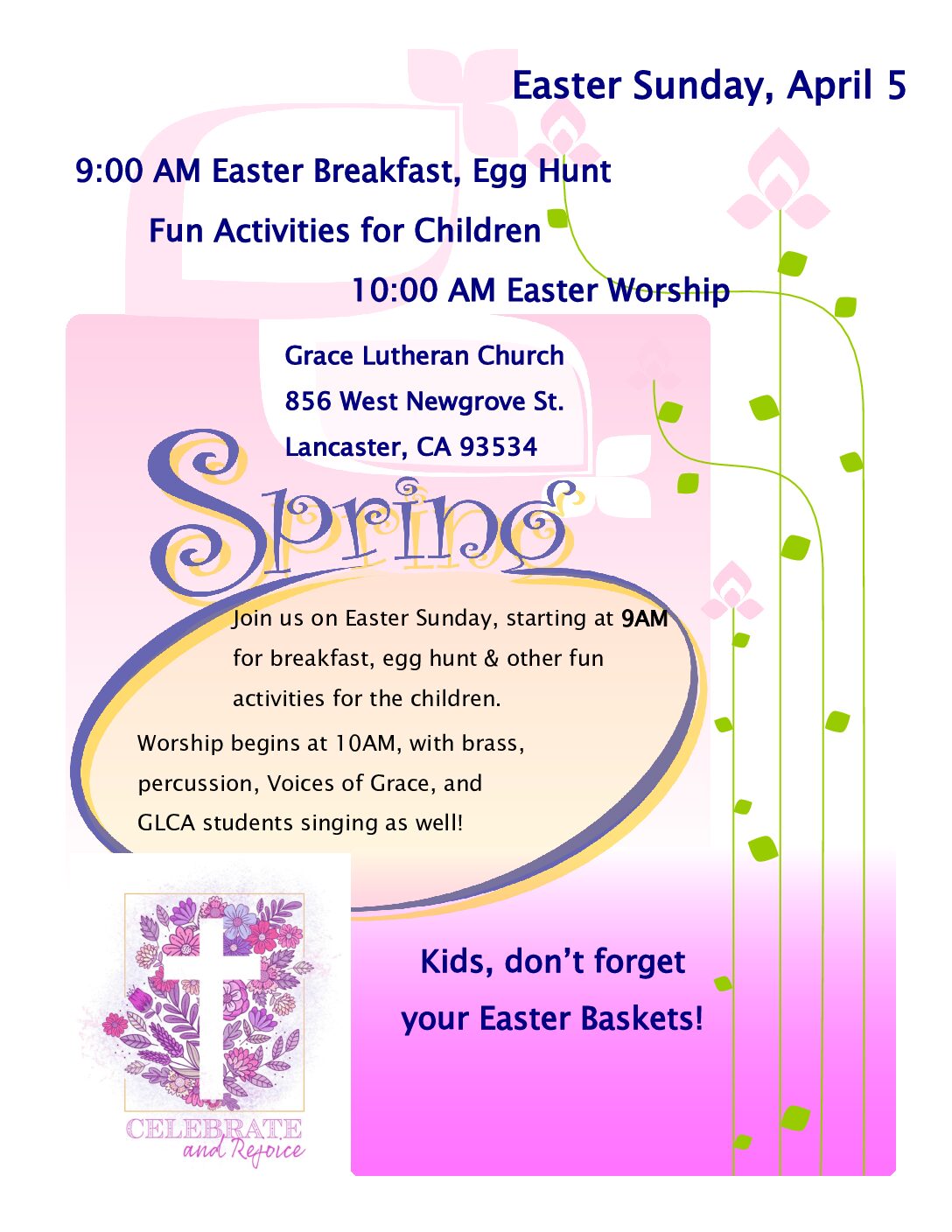 Join us on Easter Sunday, starting at 9AM for breakfast, egg hunt & other fun activities for the children.